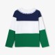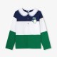 Revamped and styled for today's little girls, the polo shirt is making a remarkable arrival in the everyday wardrobe. Feminized with a Peter Pan collar edged with a ruché, wide stripes for a color block look and an embroidered J and flower badge energise this brand-new model to match with wide-leg jeans and salomés for an ultra-contemporary preppy college silhouette.