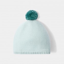 Super soft and comfortable, this adorable beanie is perfect for keeping newborns warm in cold weather. It is made modern by a green pompom and sky blue knit, and will go nicely with a navy blue snowsuit. - Soft knit - Decorative pompom..