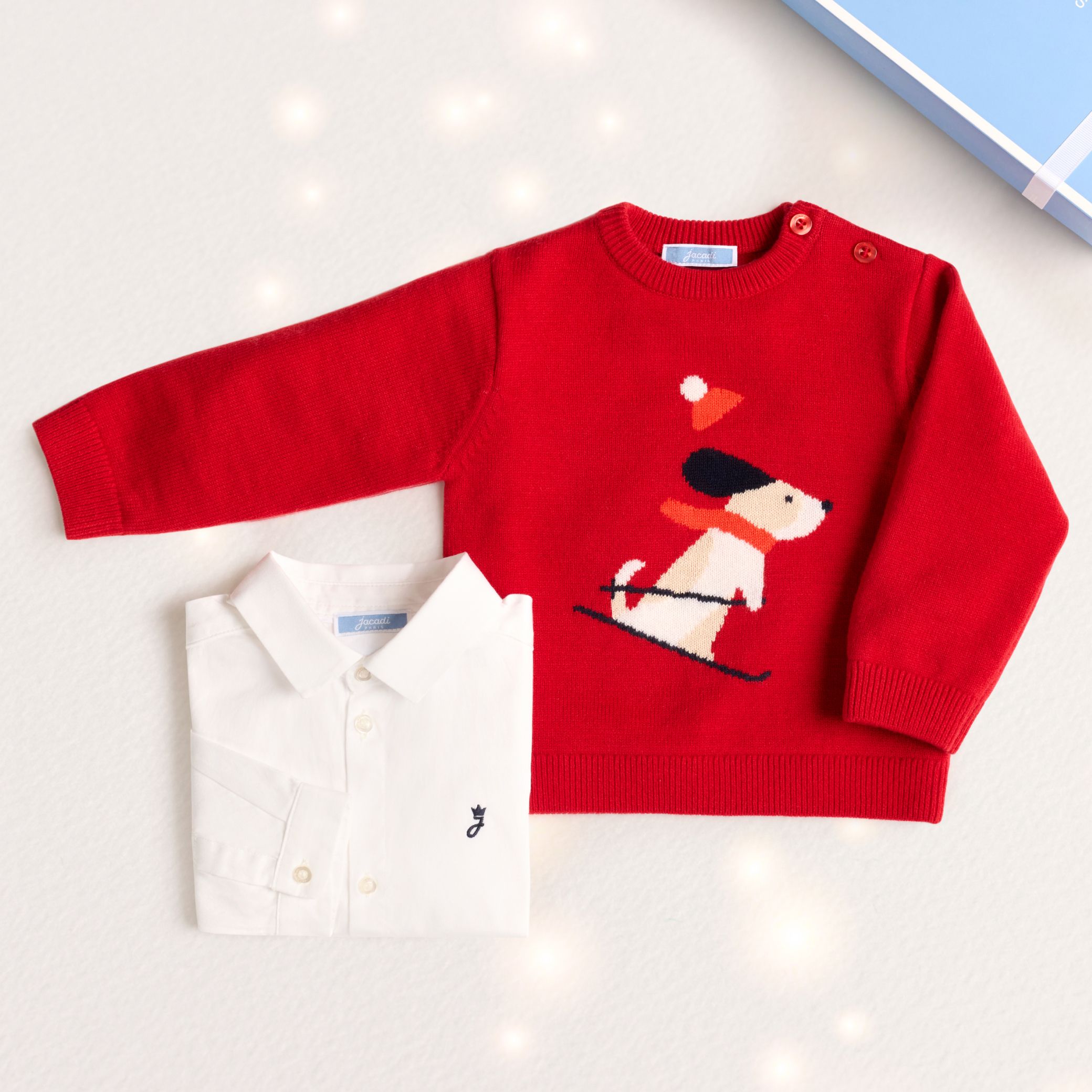 A wintry landscape illustration helps these baby socks celebrate the start of the season in style. Decorated with little pine trees and a wolf, slip them on baby's feet as soon as winter arrives. - Flexible knit - Pine tree and wolf jacquard - Color block effect - Easy to slip on..